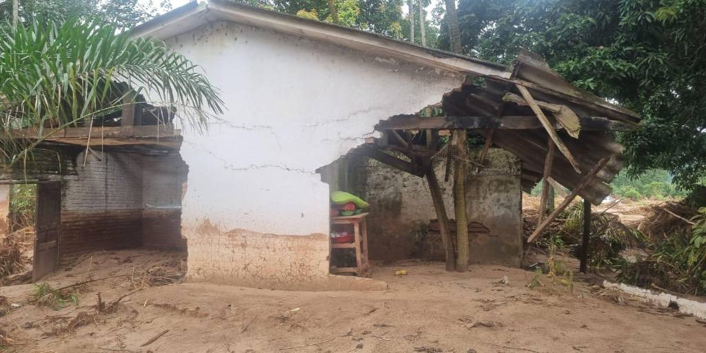 En imágenes se logra observar, como una de las casas quedó bajo escombros, lodo y palizadas. La vivienda se encuentra destruida por dentro, las paredes y partes del techo se han caído, también hay bastante palizada en el interior y en los alrededores se logra ver un tractor que se encuentra semienterrado en el lugar, entre otros objetos.
