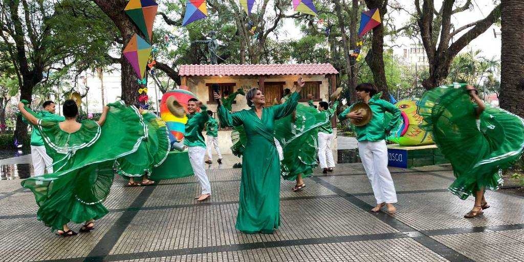 En la plaza 24 de septiembre y a los pies de la Catedral Metropolitana, se dieron los homenajes con nuestras danzas junto al Ballet Orígenes y Tradiciones quienes con una vestimenta en la que destacaba el verde, blanco y verde, nos contagiaron de su ritmo.