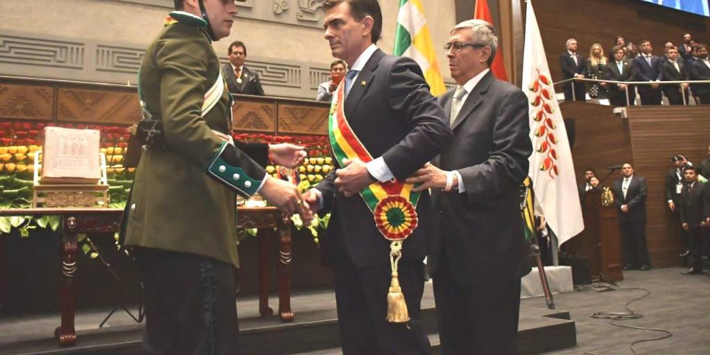 [Foto: APG] / Paz (centro) recibió la banda presidencial