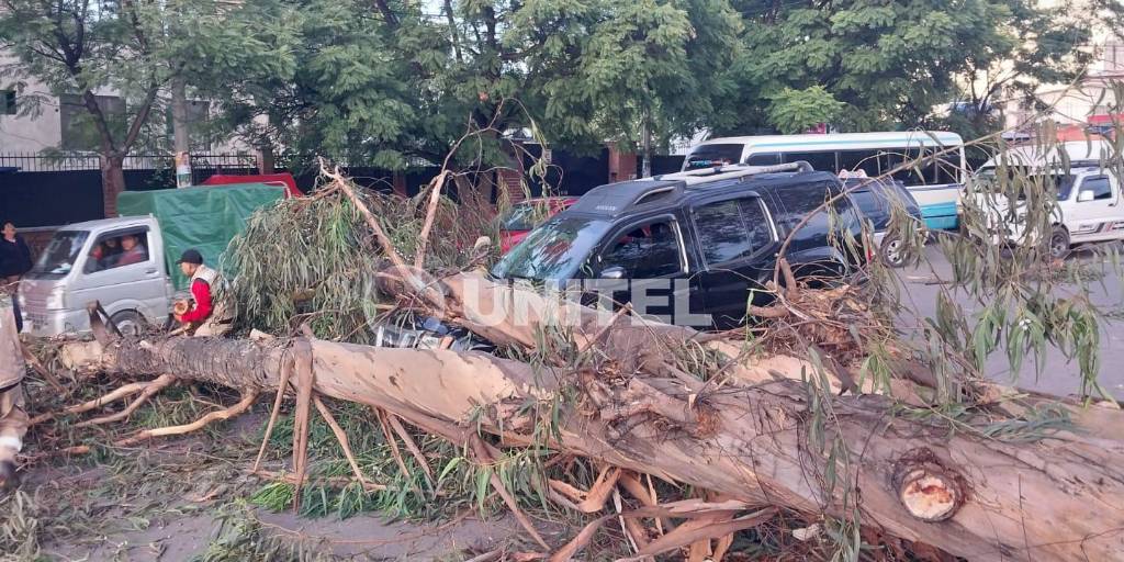 El hecho se registró en la ciudad de Cochabamba, donde un eucalipto colapsó en la zona de la plaza Tarija la madrugada de este jueves