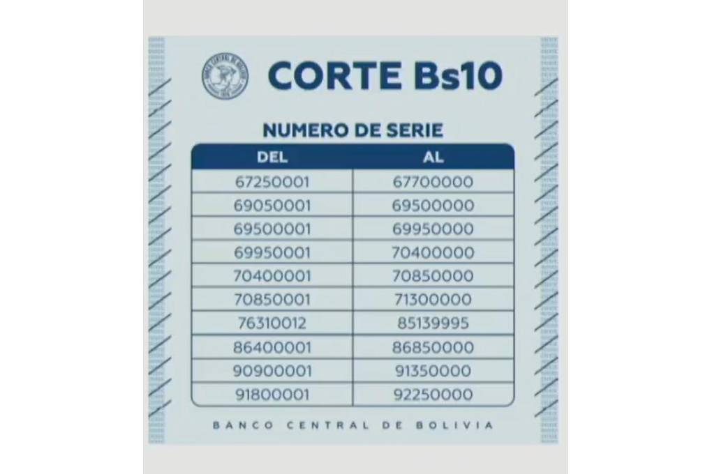 SERIES INVALIDAS DE BILLETES DE BS 10