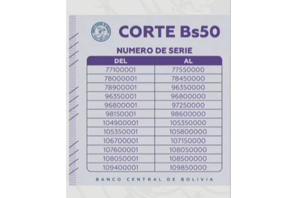 SERIES INVALIDAS EN BILLETES DE BS 50