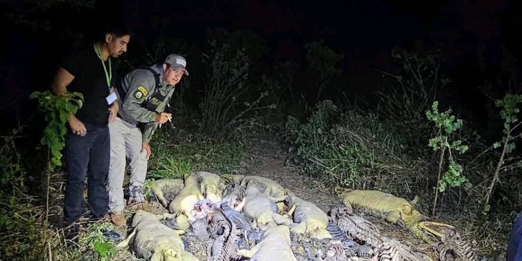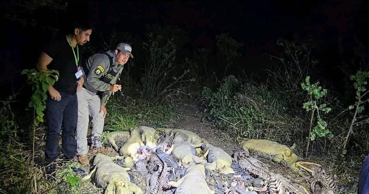 “Tenemos el reporte de un caso muy grave, el hallazgo de 41 ejemplares en estado de descomposición de la especie yacaré, que les han sacado al piel, seguramente son traficantes de esta especie. La Fiscalía a actuado con Pofoma para hacer la persecución penal y dar con los autores de ese caso de biocidio”, señaló Carlos Chispas, director nacional de Policía Forestal y de Preservación del Medio Ambiente (Pofoma).
