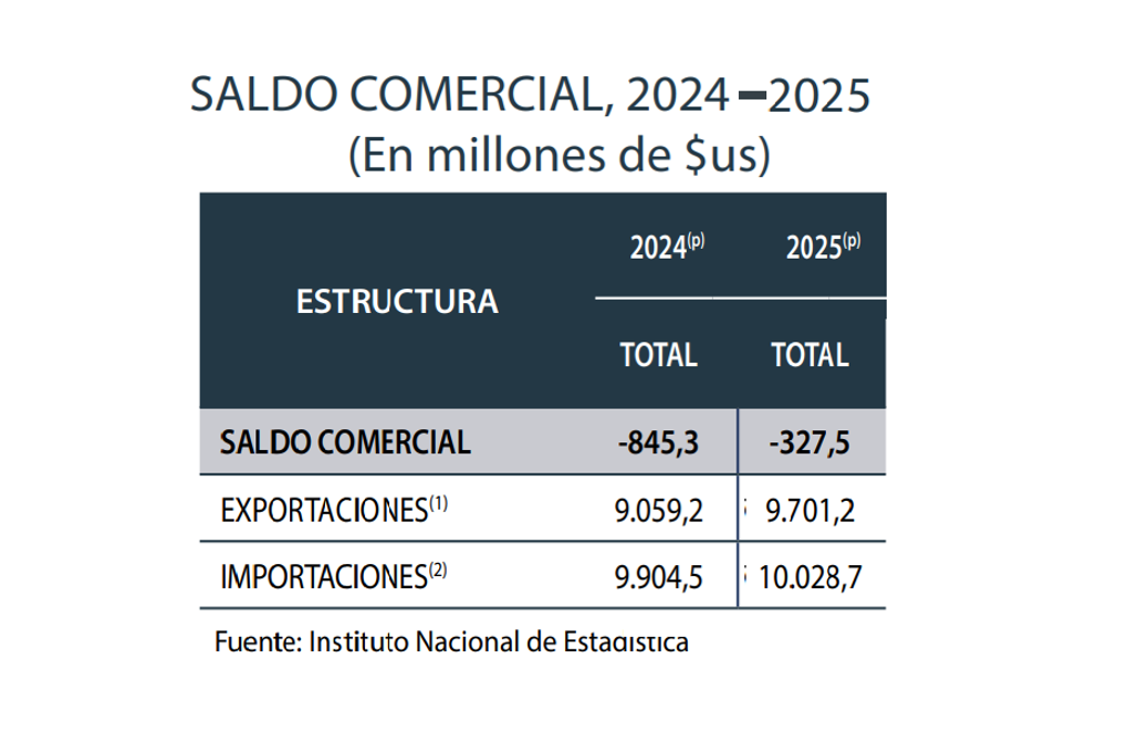 Si bien las cifras de 2025 son aún negativas, están lejos de los registros de 2024, cuando se registró un déficit comercial superior a los $us 845,3 millones, producto de $us 9.059,2 millones correspondientes a exportaciones y $us 9.904,5 millones de importaciones.