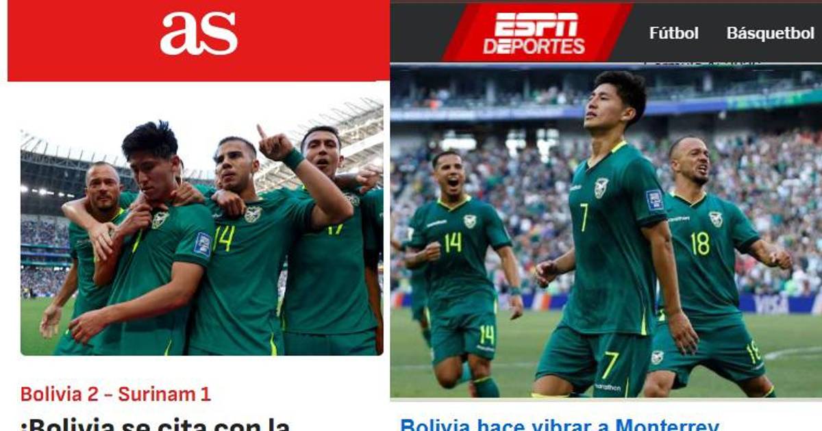 Distintos medios deportivos hicieron eco del avance de la selección boliviana en el repechaje mundialista, con el triunfo ante la selección de Surinam (2-1)