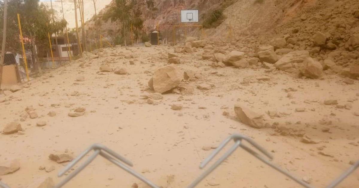 La Alcaldía de La Paz informó la tarde de este viernes que la caída del talud en Aranjuez, en el sur de La Paz, no afectó a personas ni casas del sector. El material cayó sobre parte de un campo deportivo y el patio de dos casas.
