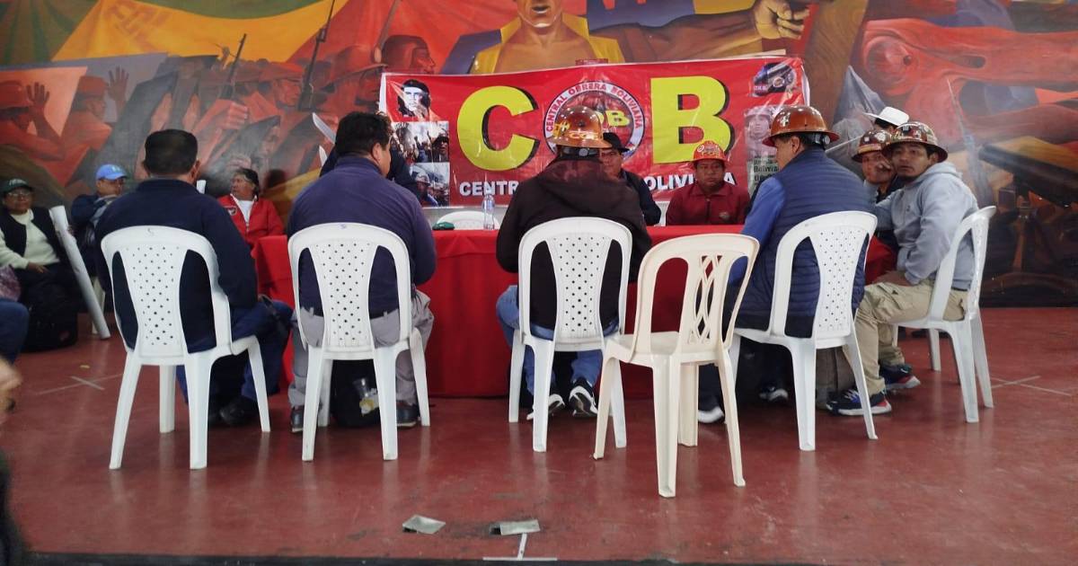 La Central Obrera Boliviana (COB) decidió este miércoles continuar con las medidas de presión contra el Decreto Supremo 5503, pero señaló que asistirá a la mesa de diálogo convocada por el Gobierno para el próximo lunes.