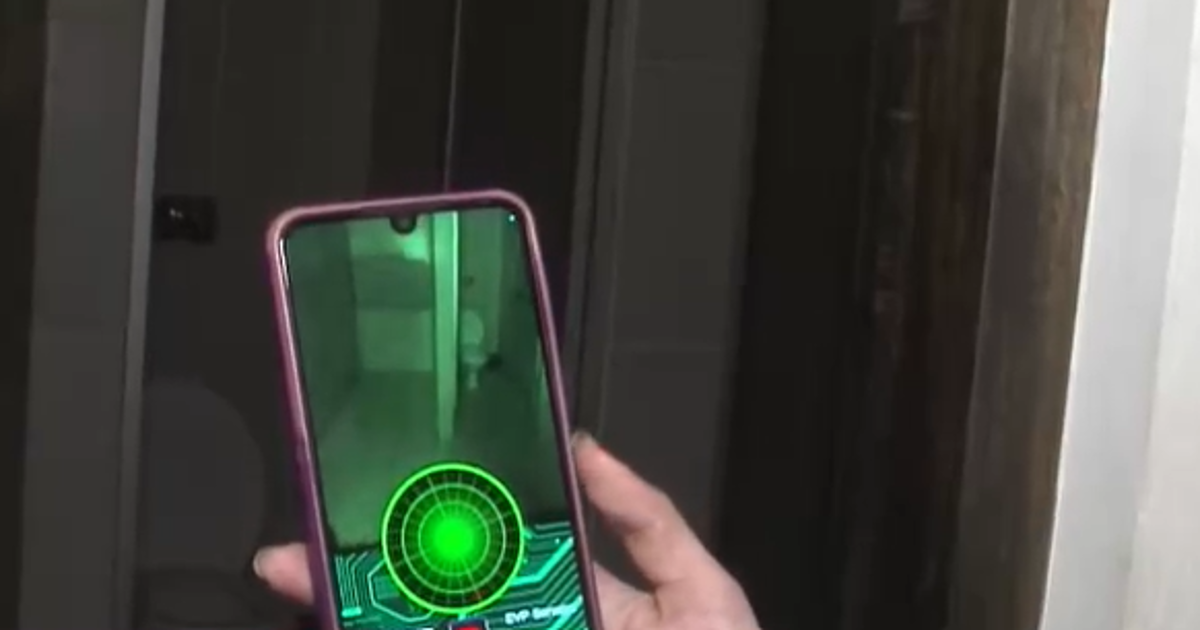 Según el dispositivo, un fantasma se escondía en uno de los baños del coliseo de La Coronilla. Con ayuda de la aplicación, se preguntó “¿Estás aquí? ¿Hay alguien aquí con nosotros?”. La respuesta se escuchó en medio de voces distorsionadas y estremeció: “Con ustedes”.