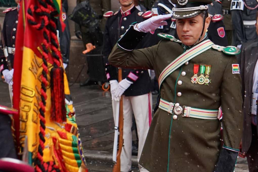 Vistiendo el uniforme policial, Edmand Lara llegó hasta la Asamblea Legislativa Plurinacional (ALP) para los actos protocolares para la posesión de Rodrigo Paz como presidente