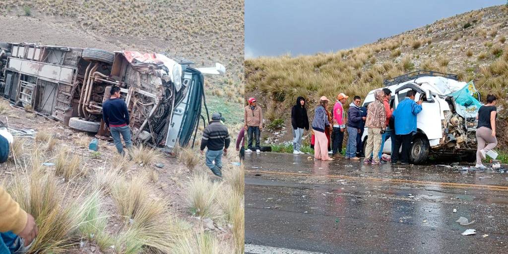 El accidente ocurrió la mañana del sábado en el kilómetro 110 de la carretera, cerca del límite entre Cochabamba y Oruro, cuando un bus de transporte interdepartamental chocó con un minibús y luego se embarrancó aproximadamente 100 metros.