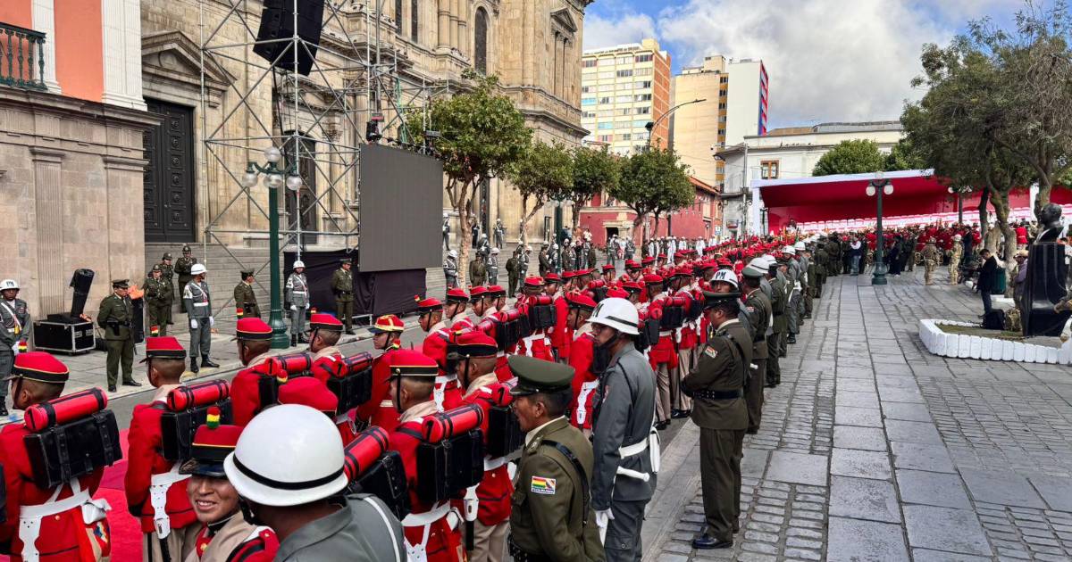 Posteriormente, harán un recorrido por la plaza, irán hacia la calle Ingavi, luego a la esquina de la Cancillería y llegarán a la Catedral, donde Paz recibirá cuatro bastones de mando.