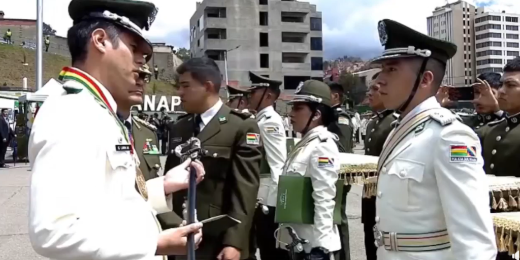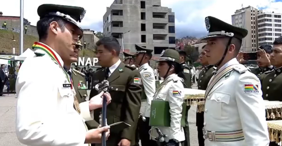 El vicepresidente de Bolivia, Edmand Lara, volvió a lucir el uniforme policial este viernes, durante el acto de egreso de nuevos oficiales de la Academia Nacional de la Policía.