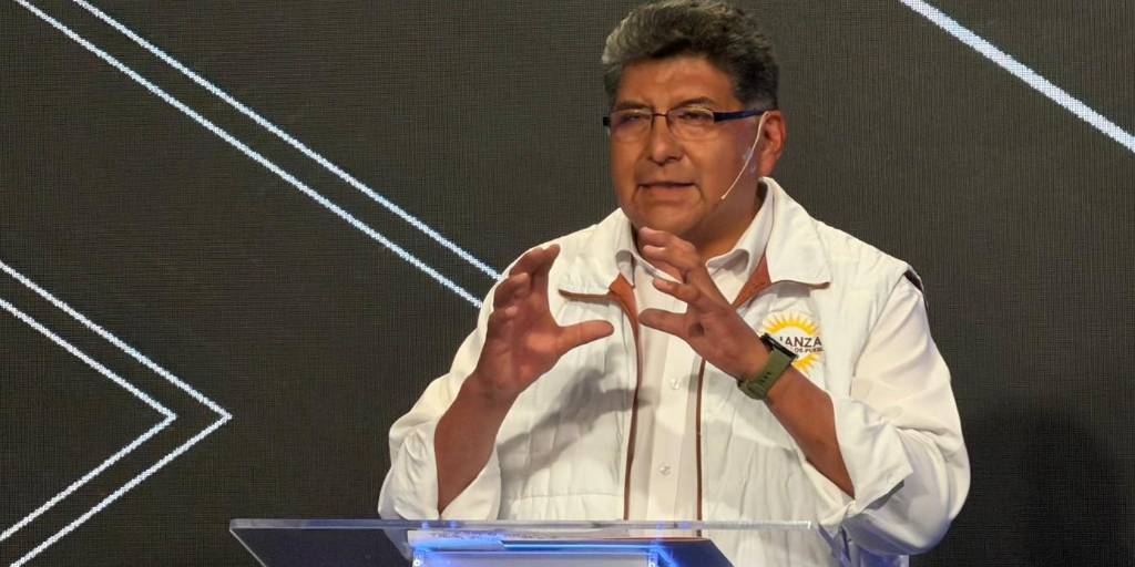 [Foto: UNITEL] / El postulante de la Alianza Unidos por los Pueblos (A-UPP), Isaac Fernández.