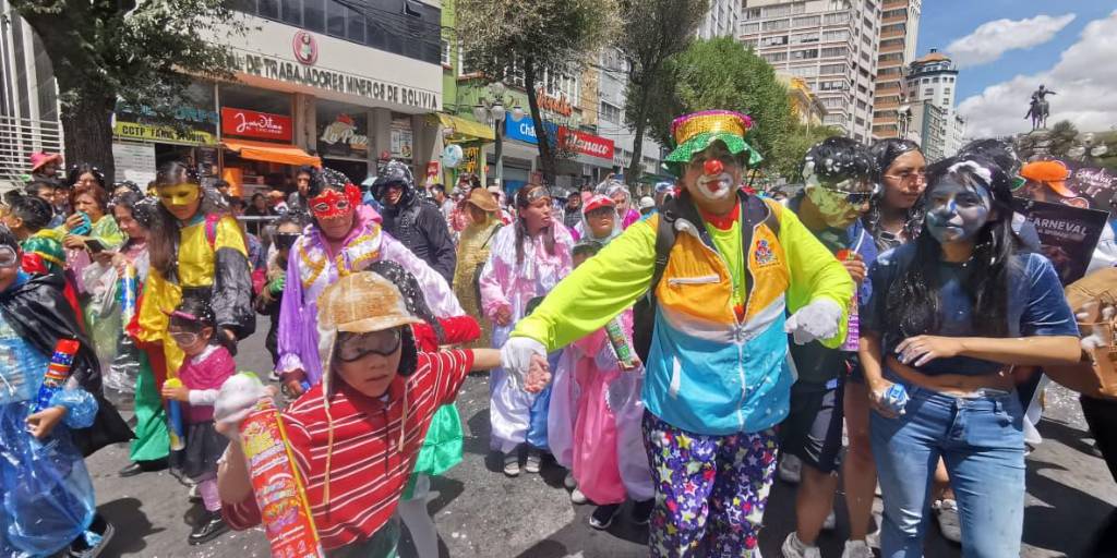 Un numeroso grupo de personas llegó al centro de la ciudad de La Paz para participar en el Corso Infantil. La algarabía y centenas de curiosos disfraces marcaron el evento que se inundó con la espuma carnavalera.