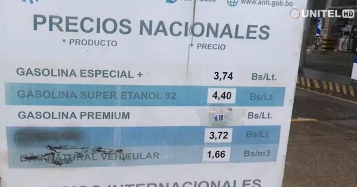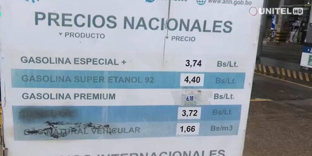 Por ejemplo, en el surtidor ubicado en la Radial 19 y cuarto anillo, en Santa Cruz de la Sierra, se observó que había carteles en los que se informaba que la Premium + tiene un valor actual de Bs 6,18 el litro mientras que antes se vendía a Bs 5,71 por litro.