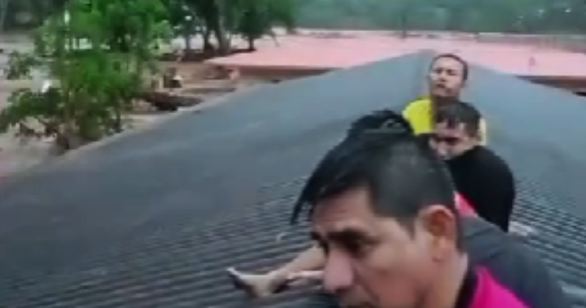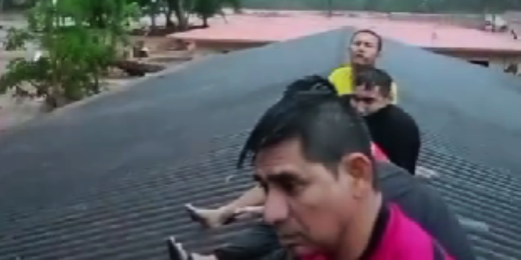 [] / Un grupo de personas está sobre los techos de una las viviendas inundadas en El Torno