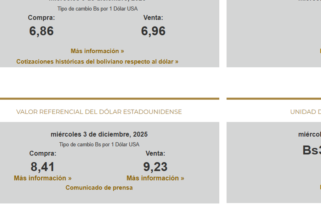 Desde esta semana, el Banco Central de Bolivia (BCB) difunde de forma diaria el valor referencial del dólar estadounidense con base en las operaciones efectivas entre las entidades financieras y sus clientes.