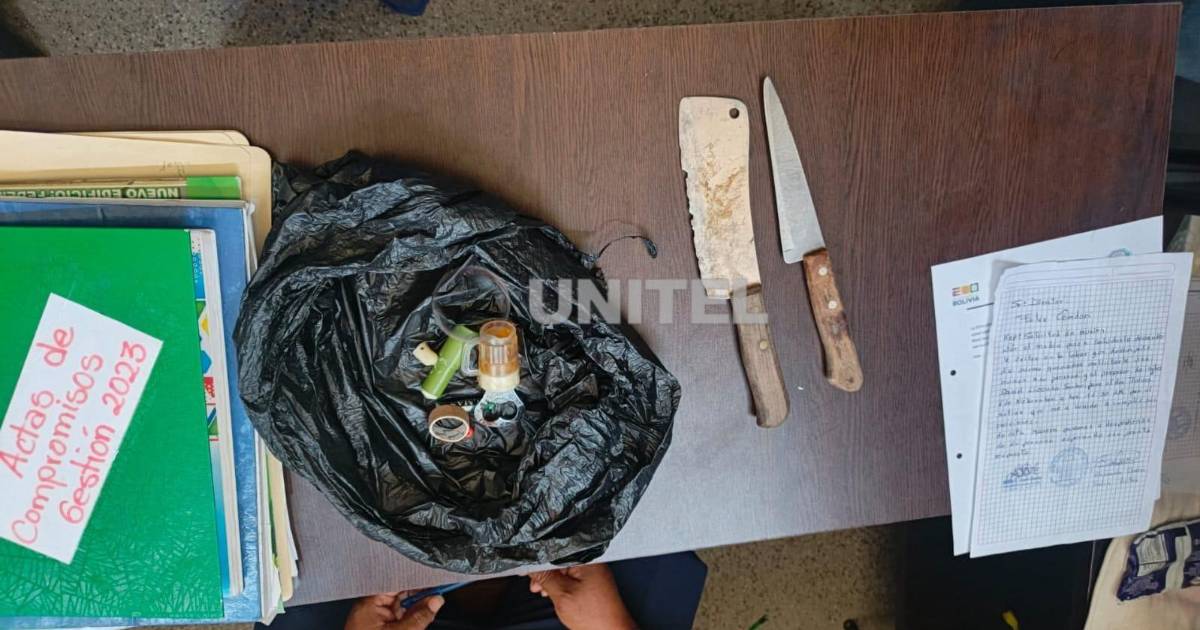 Un estudiante de 13 años de una unidad educativa en la zona del Plan Tres Mil, Santa Cruz de la Sierra, denunció amenazas de parte de sus compañeros. En ese sentido el personal docente realizó una inspección en las mochilas de los alumnos encontrándose dos cuchillos de gran tamaño, además de otros objetos que presumiblemente iban a ser utilizados para atacar a la víctima en el horario de salida.