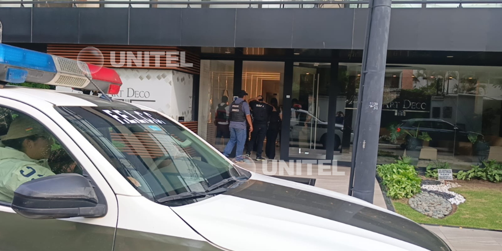 El segundo allanamiento se efectuó en un condominio situado en la zona de Equipetrol. En este punto, los investigadores revisaron un departamento y procedieron a la verificación de las cámaras de seguridad, con la finalidad de obtener registros que ayuden a identificar a los autores del crimen.