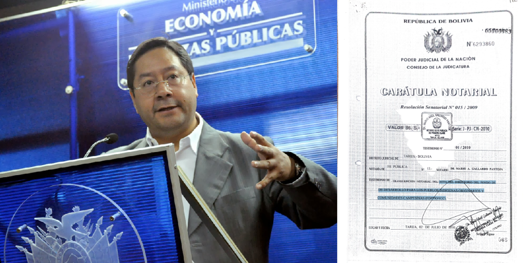 Según un acta del directorio del Fondo Indígena con fecha de noviembre del 2009, Luis Arce, entonces ministro de Economía, sabía que no se podían transferir recursos de esta instancia a cuentas particulares.