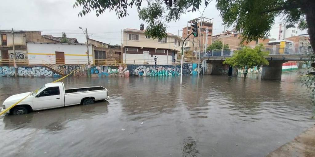 Fuertes lluvias provocan el cierre del desnivel de la avenida Ayacucho en Cochabamba