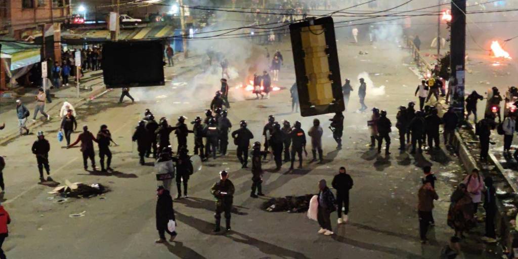 La noche de este domingo, sectores que bloqueaban en El Alto arremetieron contra vehículos y transeúntes en la zona de Río Seco, lo que desencadenó una gasificación por parte de la Policía.