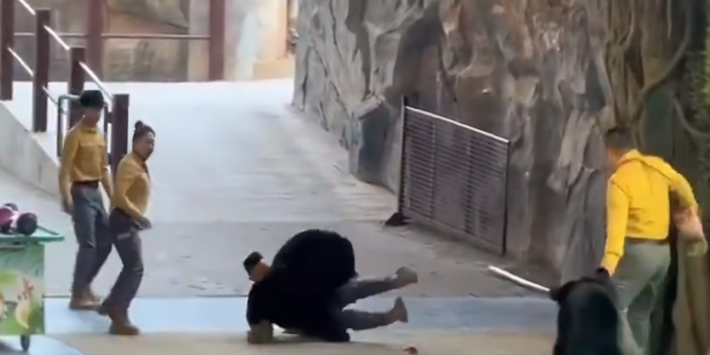 El incidente ocurrió en el Hangzhou Safari Park. Antes del ataque, se observa al personal trasladando a dos osos negros a un escenario para una presentación de salto de obstáculos.