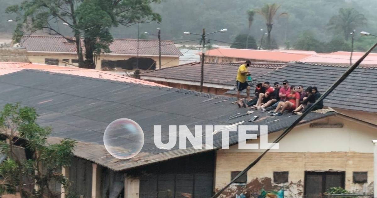 Inundación en Santa Cruz: un grupo de personas se resguarda en el techo del centro de rehabilitación Cenvicruz; hay evacuados