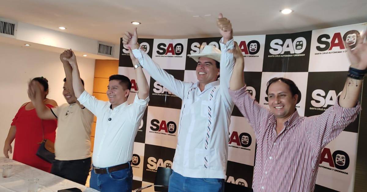 Este miércoles se presentó la dupla de la alianza conformada por SAO y ADN y que postula como precandidato a gobernador cruceño a Juan Carlos Medrano y como vicegobernador a Victor Hugo Núñez del Prado.