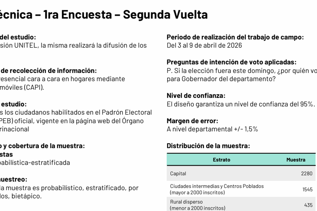 MIRA AQUÍ: Ficha técnica: Encuesta de intención de voto consultó a 4.260 personas en el departamento Santa Cruz