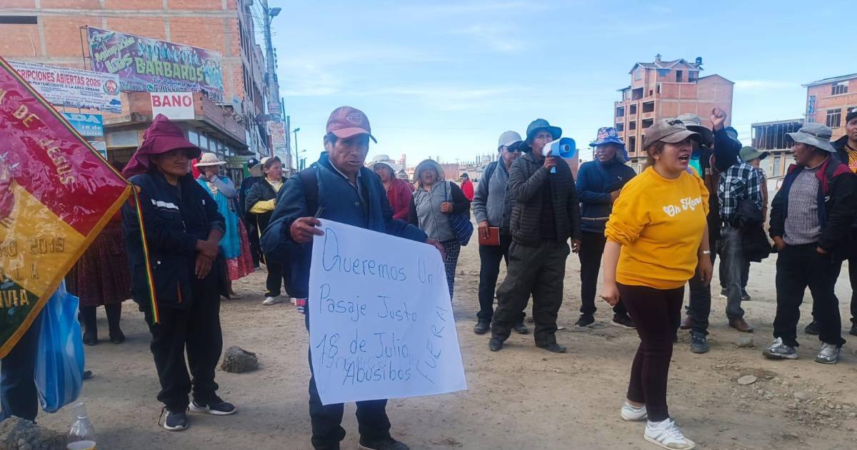Juntas vecinales de El Alto bloquean la ruta hacia Oruro contra los trameajes del transporte público