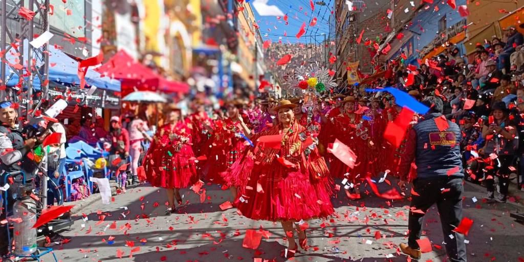 Han transcurrido más de 12 horas y el colorido de las danzas bolivianas no deja de maravillar a quienes presencian la “Fiesta Mayor de los Andes”, que toma en las calles del este y el centro de La Paz.