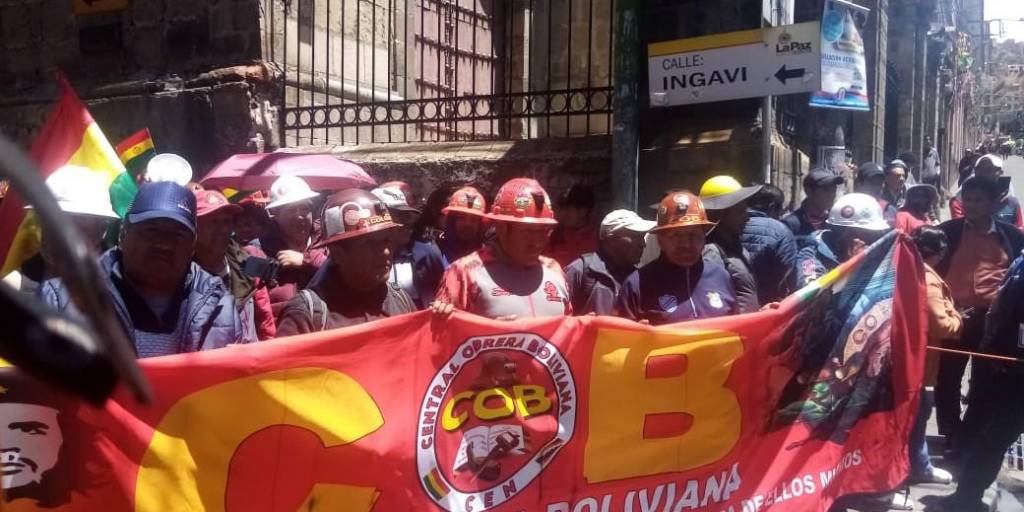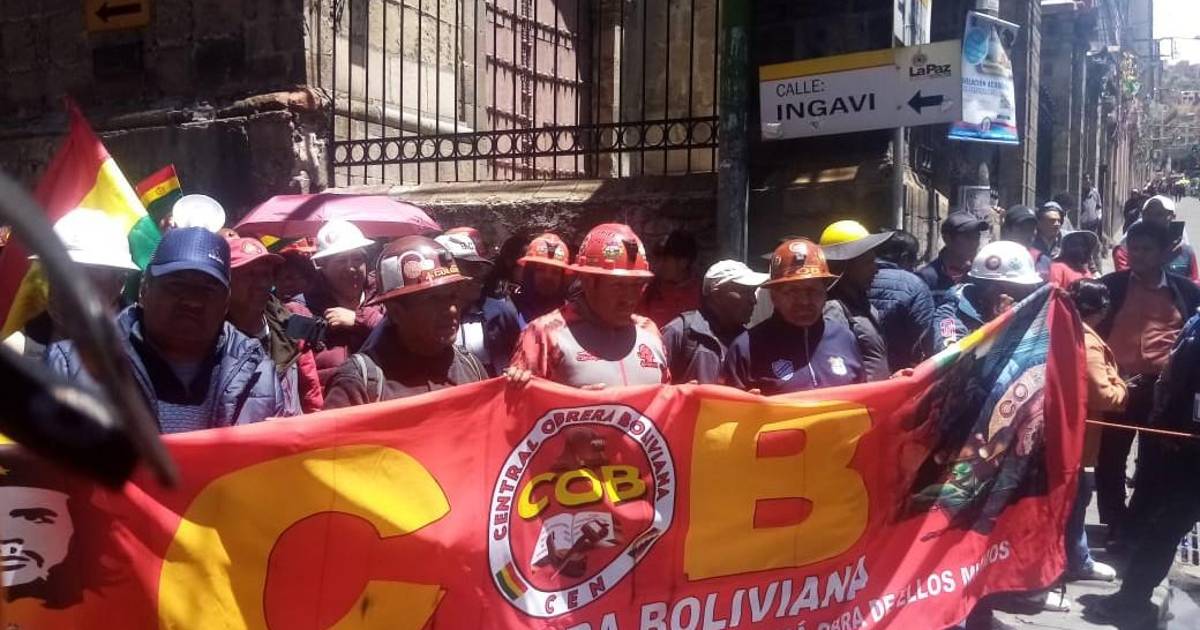 La marcha de los afiliados a la Central Obrera Boliviana (COB) contra el Decreto Supremo 5503 llegó al centro de la ciudad de La Paz minutos después de las 11:30 e instaló una vigilia en las calles aledañas a la Casa Grande del Pueblo, donde se instalará el diálogo convocado por el Gobierno.