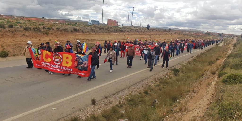 La marcha de los afiliados de la Central Obrera Boliviana (COB) partió la mañana de este domingo desde la localidad de Villa Remedios con dirección a Senkata, en la ciudad de El Alto.