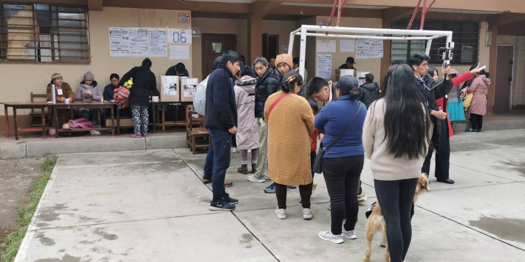 En la Unidad Educativa Gran Bretaña, en la ciudad de El Alto, se reportó que a 20 minutos del cierre de mesas, comenzaron a llegar más personas para emitir su voto.