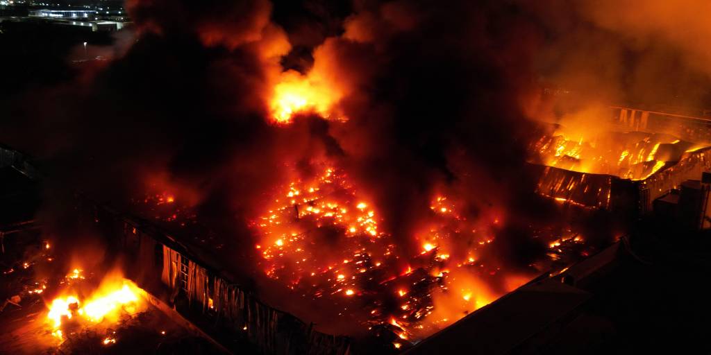 Al menos una de las fábricas incendiadas, que la prensa cifra en cinco, quedó reducida a cenizas, pudo ver la AFP.