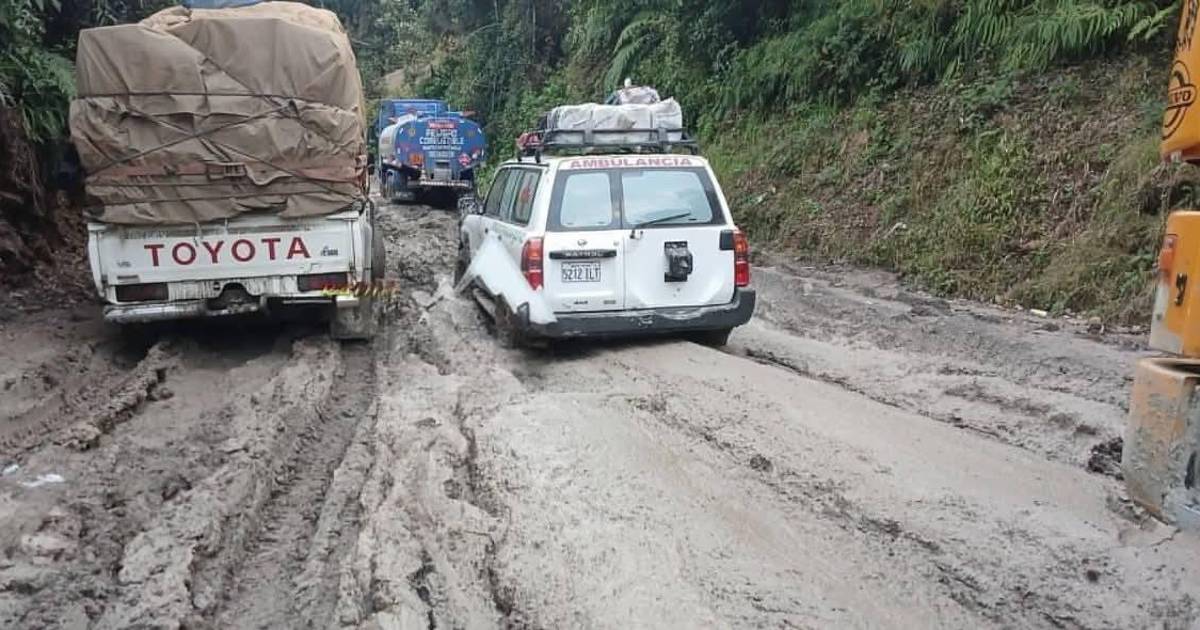 En redes sociales circularon este martes fotografías que muestran el mal estado de la carretera. El camino quedó totalmente enlodado, perjudicando a buses, ambulancias y otros motorizados.