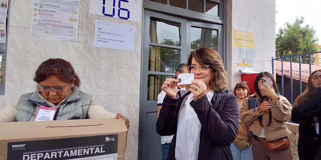 La única mujer en carrera por el sillón municipal en Cochabamba, emitió su voto poco antes de las 09:00 en el colegio La Salle