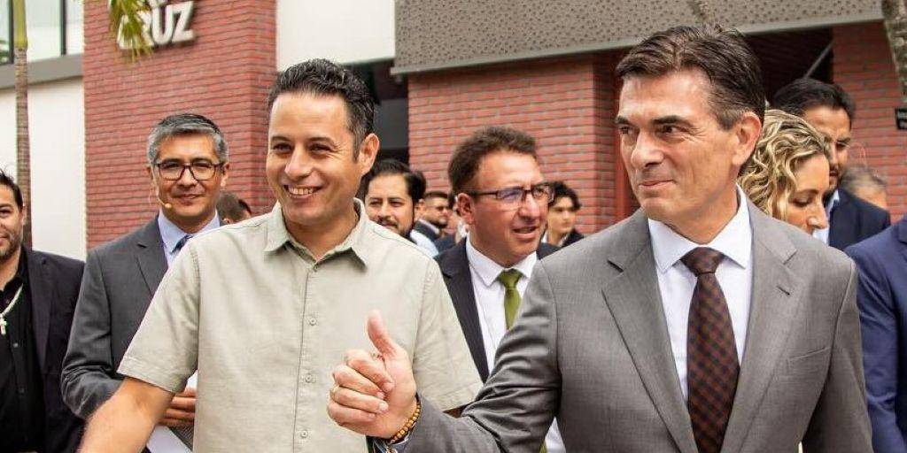 [Foto RPP.] / El vicepresidente Edmand Lara y el presidente Rodrigo Paz en un evento en Santa Cruz.