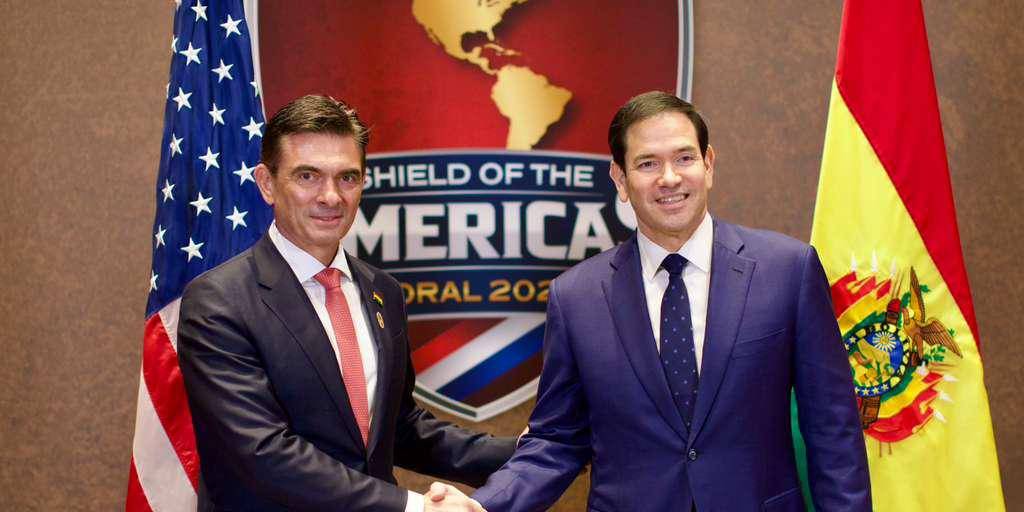 En una publicación de la Oficina del presidente Rodrigo Paz se lee “El presidente de Bolivia, Rodrigo Paz, mantuvo un encuentro bilateral con el secretario de Estado de Estados Unidos, Marco Rubio, en el marco de la cumbre Escudo de las Américas”.