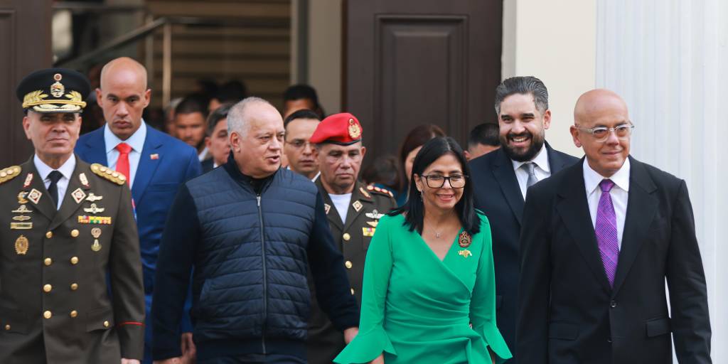 [Foto: EFE] / Jorge Rodríguez (izquierda) junto a la presidente de Venezuela, Delcy Rodríguez (vestido)