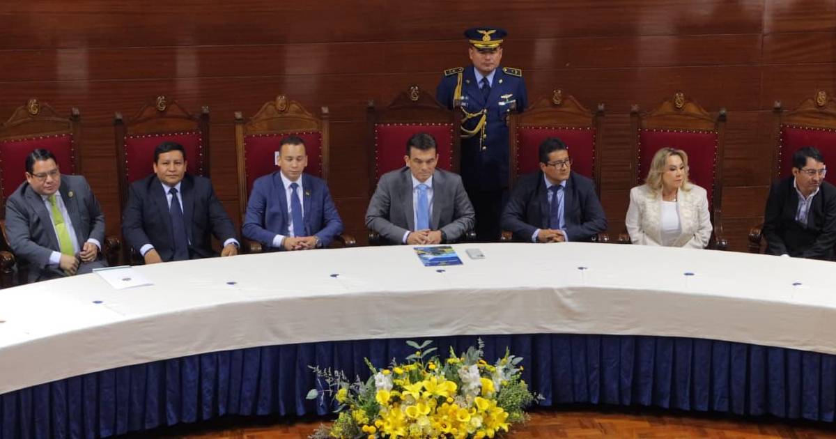 [Foto: APG] / El presidente del TSJ, Romer Saucedo, durante la cumbre junto al presidente Paz y otras autoridades.