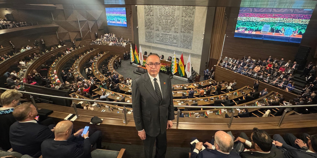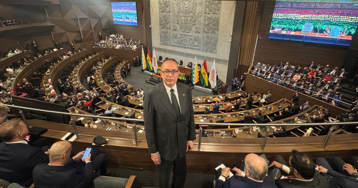 “Tengamos presente que somos patrias hijas de los mismos libertadores”, sostuvo el representante que estuvo en el Palacio Legislativo para la toma de mando de Rodrigo Paz