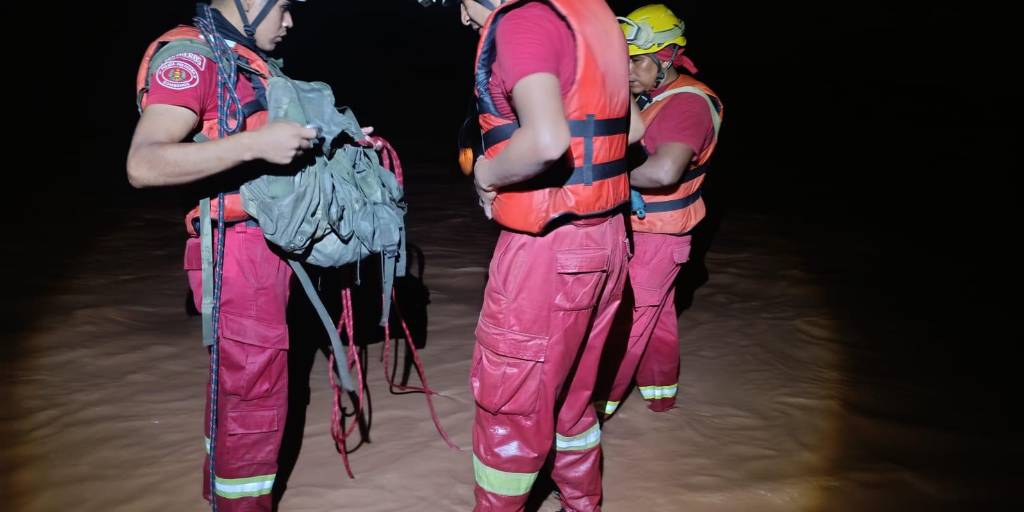 De acuerdo con el reporte, inicialmente los bomberos intentaron cruzar el río; sin embargo, la fuerza del agua se los impidió.