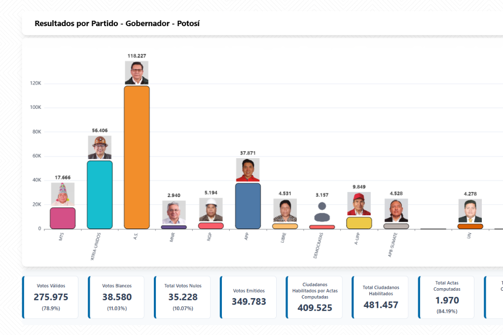 Resultados preliminares: René Joaquino se perfila como el gobernador de Potosí