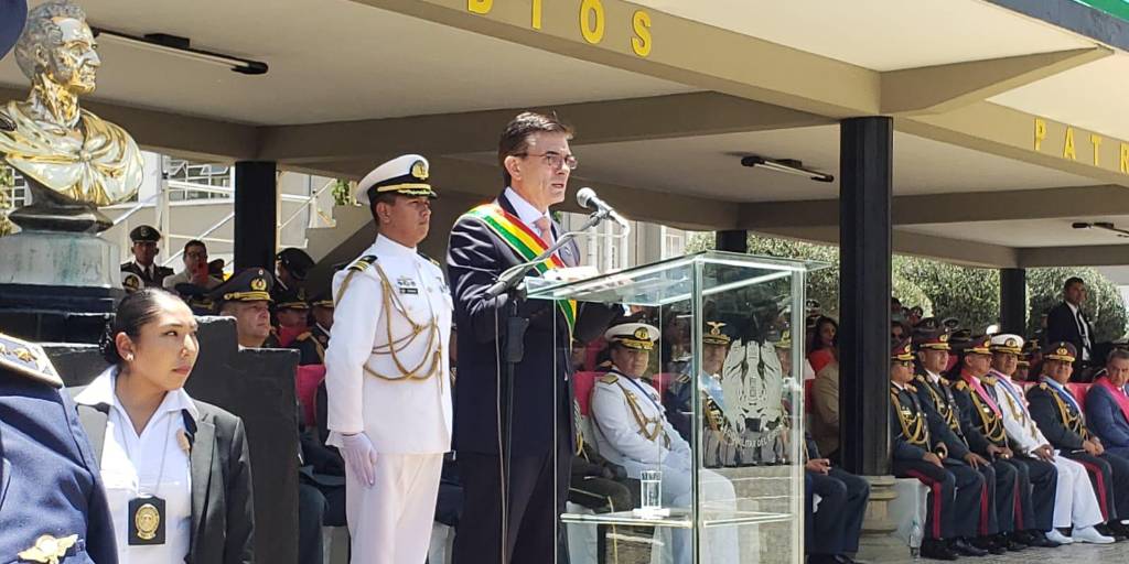 “Hoy Bolivia no pelea una guerra externa, pero enfrenta inseguridad, crimen organizado, transaccional, fronteras vulnerables, contrabando corrupción, desconfianza social, eso es lo que nos han dejado, eso tenemos que revertir, lo estamos haciendo, poniendo en su lugar aquellos que nos robaron y vamos a luchar con firmeza para recuperar la patria”, dijo Paz en el acto.