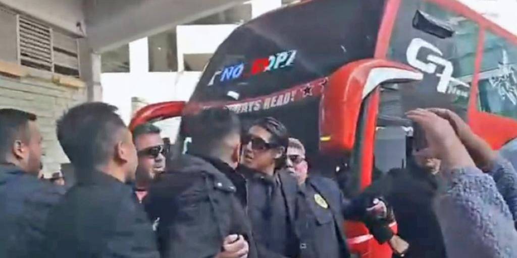 El director técnico de Always , Julio César Baldivieso, tuvo que ser contenido por personal de la seguridad cuando intentó confrontar a un hincha de Bolívar a su llegada al estadio Hernando Siles, en medio de insultos.