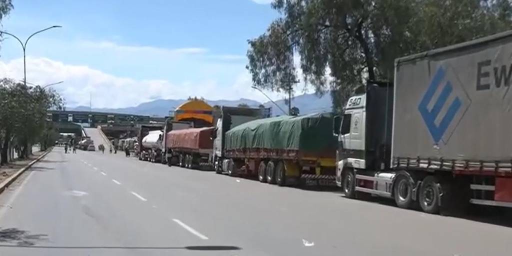 [Foto captura de video ] / Fila de camiones por diésel en Cochabamba