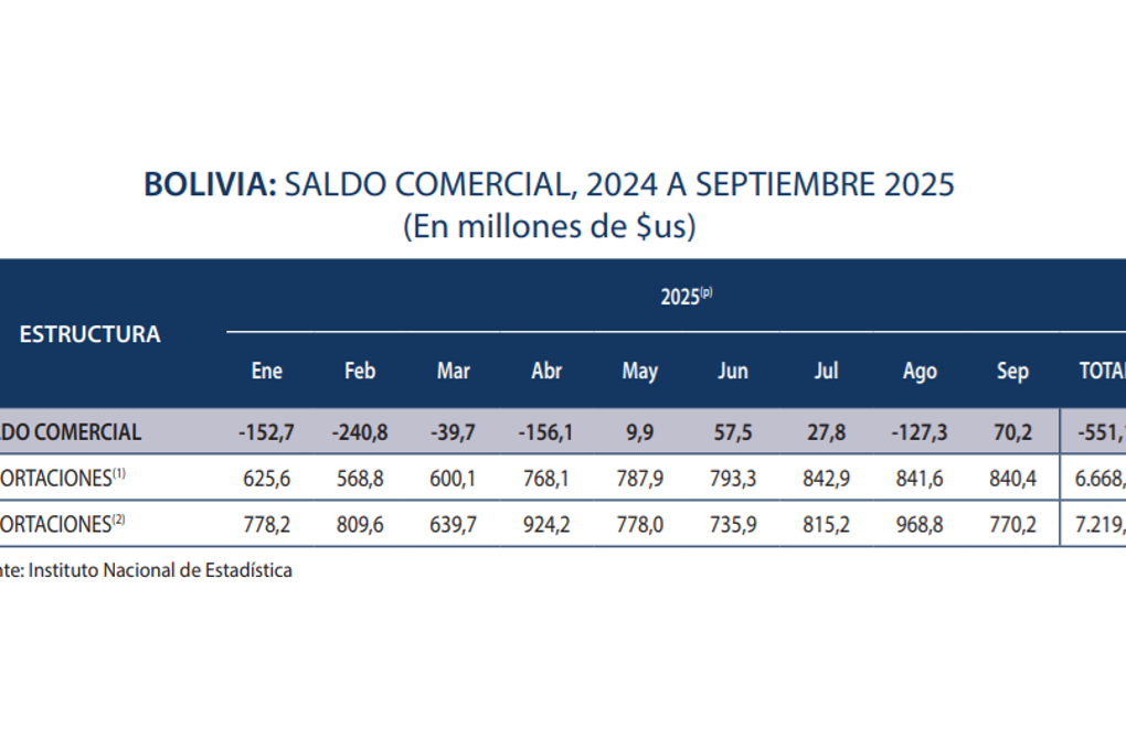 El reporte refleja que, hasta el tercer trimestre de este año, las exportaciones alcanzaron los $us 6.668,6 millones, lo que implica una cifra menor al registro de importaciones que alcanzó los $us 7.219,8 millones.