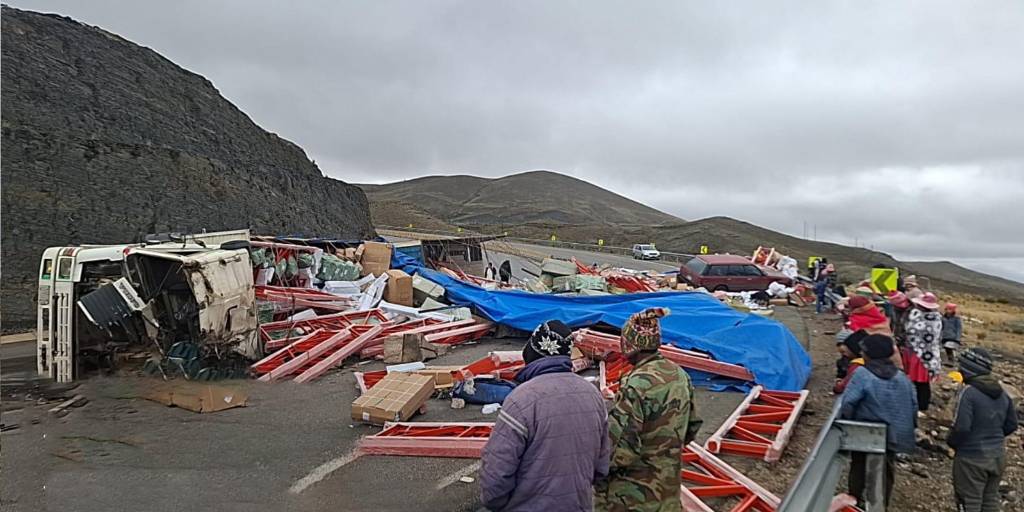 El hecho se registró a la altura del kilómetro 126, en el sector de Confital, en circunstancias que aún se investigan, sin embargo, producto del choque el vehículo de alto tonelaje quedó volcado a un lado de la carretera.